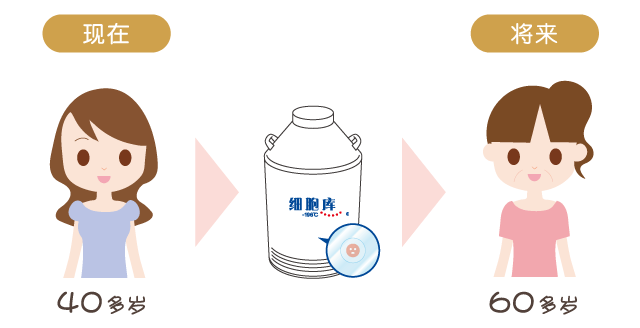 比如您现在40多岁,在20年后即60多岁时,您可以接受最尖端的肌肤细胞补充疗法来“补充40多岁时的肌肤细胞”。